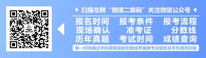 以上是關(guān)于2019年合肥成人高考免試入學(xué)條件的相關(guān)內(nèi)容,考生如果想獲取更多關(guān)于成人高考的相關(guān)資訊,如成人高考報名時間、考試時間、報考條件、備考知識、相關(guān)新聞等,敬請關(guān)注安徽成考網(wǎng)或掃描微信公眾號二維碼獲取更詳細(xì)的成考信息。